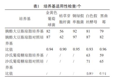 被檢與對(duì)照培養(yǎng)基菌落平均數(shù)的比值均在 0.5 ~ 2 范圍內(nèi),且菌落形態(tài)大小與對(duì)照培養(yǎng)基的菌落一致(表 1),說明培養(yǎng)基適用性檢查符合要求。
