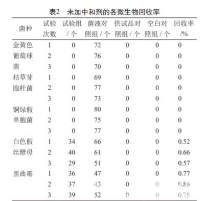 分別以 4.0% 聚山梨酯 80 和 2 mol/L 氯化鎂為中和 劑,各組每 100 ml 培養(yǎng)基中加入了 5 ml 中和劑,其余 按 1.4.2 操作。