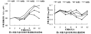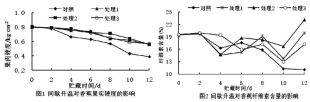 香蕉中含有豐富的纖維素,低溫造成的香蕉果實 冷害,使纖維素流失較快,隨著呼吸作用的消耗,用于 合成營養(yǎng)物質(zhì)的底物減少,也會導致纖維素含量逐漸 減少。如圖 2 所示,貯藏期間間歇升溫處理的果實的纖 維素含量均呈現(xiàn)先降后升的趨勢,經(jīng)間歇升溫的果實 纖維素含量在 10~12d 間突然上升,而對照組則呈現(xiàn)一 直下降的趨勢,且隨著時間的延長,纖維素含量下降越 來越快。結果表明,間歇升溫對貯藏期間香蕉的纖維素 含量的流失有一定的抑制作用。