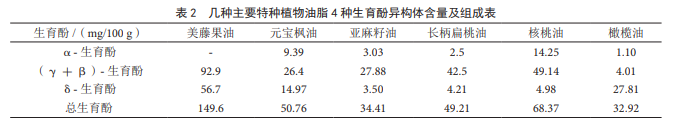 (2)不同提取工藝制取特種植物油脂 4 種生育酚 異構(gòu)體含量及其組成差異明顯,主要由于高溫?zé)崽幚怼?精煉過程會(huì)造成 4 種生育酚異構(gòu)體損失。結(jié)合不同特種 植物油脂原料特性及營(yíng)養(yǎng)物組成的差異,韓本勇等建 議采用適當(dāng)?shù)奶嵊凸に嚰夹g(shù)來最大限度地提高 4 種生育 酚異構(gòu)體含量及 γ- 生育酚和 δ- 生育酚收率。